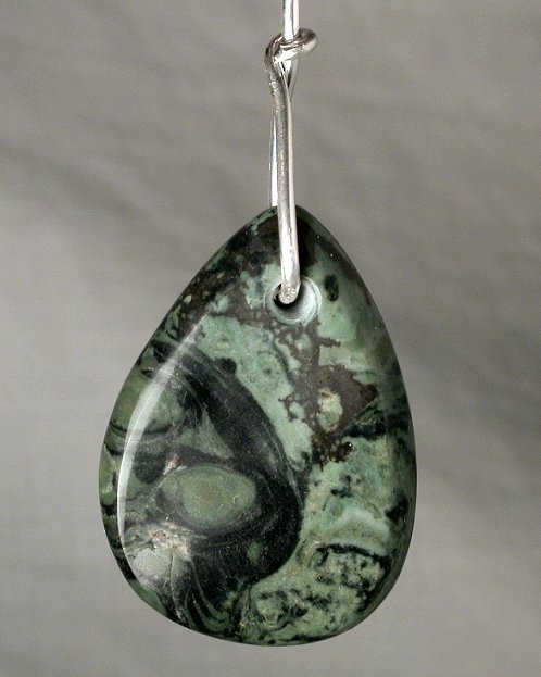 View 2 View 3 View 4 View 5 View 6 Willow Creek Jasper Talisman pendant designer focal point bead Rare and fabulous Powerful Shamanic healing energy hand carved by Mystic Merchant 50 x 30 x 5 mm (stone alone) sterling silver bail adjustable leather necklace included item # WillowCkTalisMo1 $333.99 |