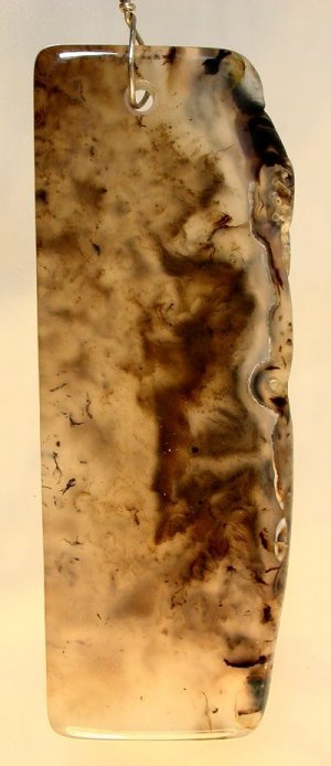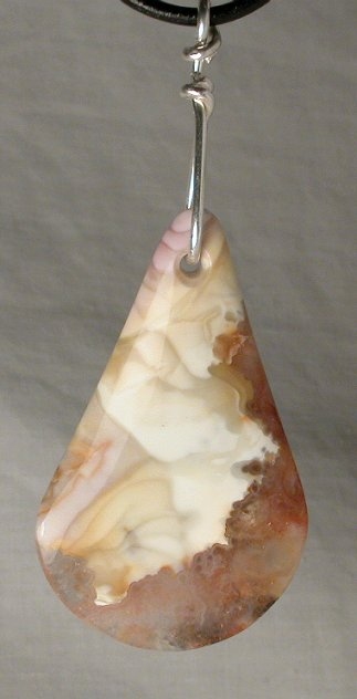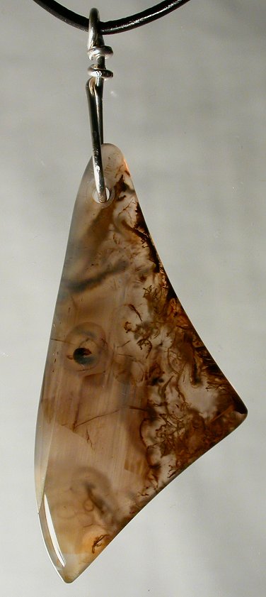 View 2 Mount Rainier plume agate Talisman/ pendant designer focal bead Shamanic healing energies 3rd chakra energizer sterling silver bail adjustable leather necklace included 47 x 18 x 5 mm (stone alone) item # mtraintalis1 $133.99 |