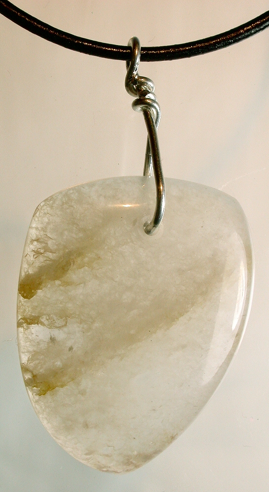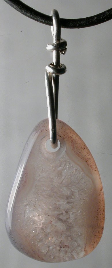 View 2 Silver in quartz agate Talisman/ pendant designer focal bead Shamanic healing energies 2nd chakra healing sterling silver bail adjustable leather necklace included 29 x 20 x 5 mm (stone alone) item # silvqtztalis2 $129.99 SOLD |