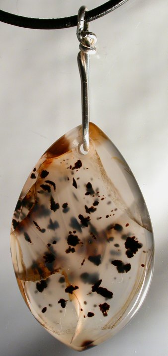 View 2 View 3 Dendritic Montana agate pendant focal point bead incredible Shamanic power healing meditation energetics sterling silver bail adjustable leather necklace included 31 x 17 x 7 mm (stone alone) $139.99 SOLD item # dendagpend2 |